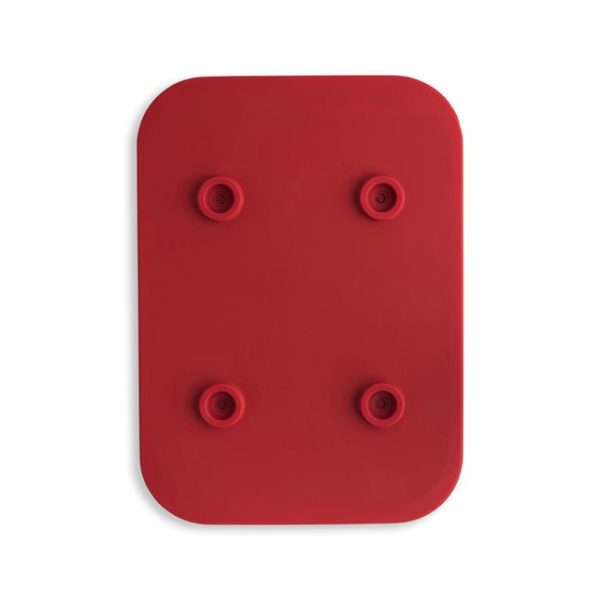 Evite que su plancha se deslice fuera de la estación de prensado con este robusto soporte metálico recubierto de goma de silicona. Cuenta con dos zonas elevadas en el soporte para mayor seguridad de la plancha. Colóquelo plano sobre la superficie para evitar que se deslice. Soporta hasta 500 grados. 16 x 22 cm.